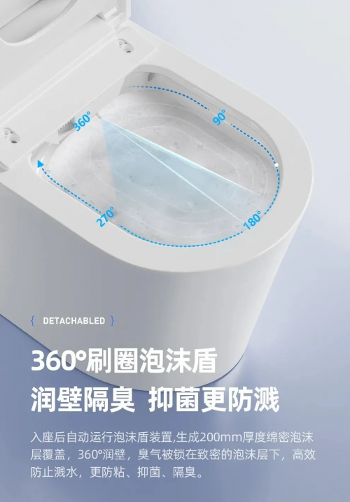 别再手动刷马桶啦!这款马桶自带双洁净冲刷+360°内置泡沫盾,冲水像“魔法清洁”,顽固污渍一键扫清,泡沫盾还能防溅、隔臭,卫生间从此告别异味尴尬~
