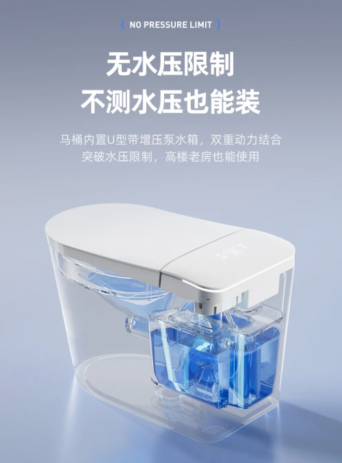 住低楼层、老旧小区担心水压不够?它内置独立水箱,双重漩冲技术,哪怕水压为0也能“水力全开”,冲得超干净,再也不怕堵塞!