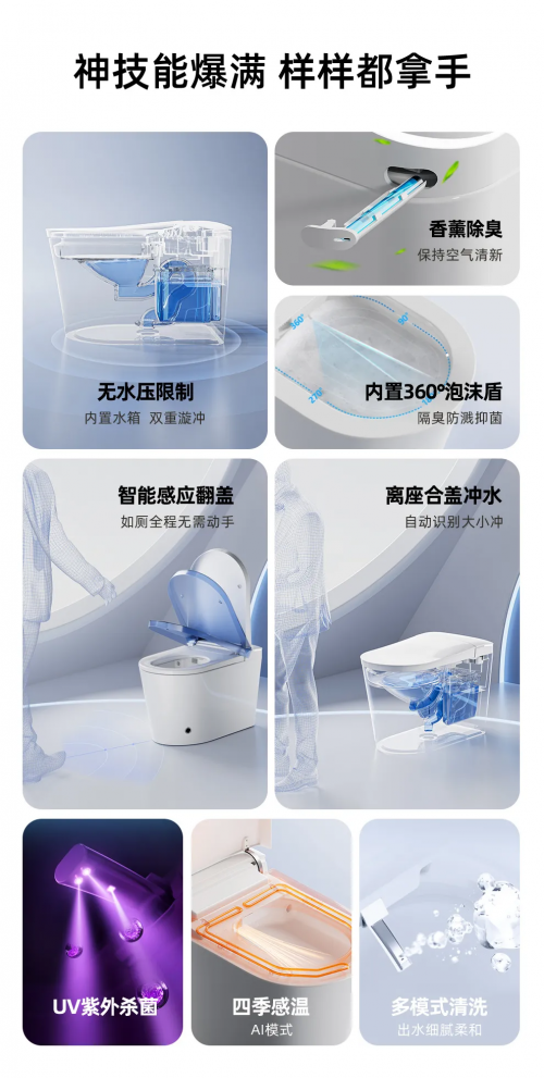 • 离坐自动冲水:还能识别“大小冲”,省水又智能,打工人的“偷懒神器”实锤!