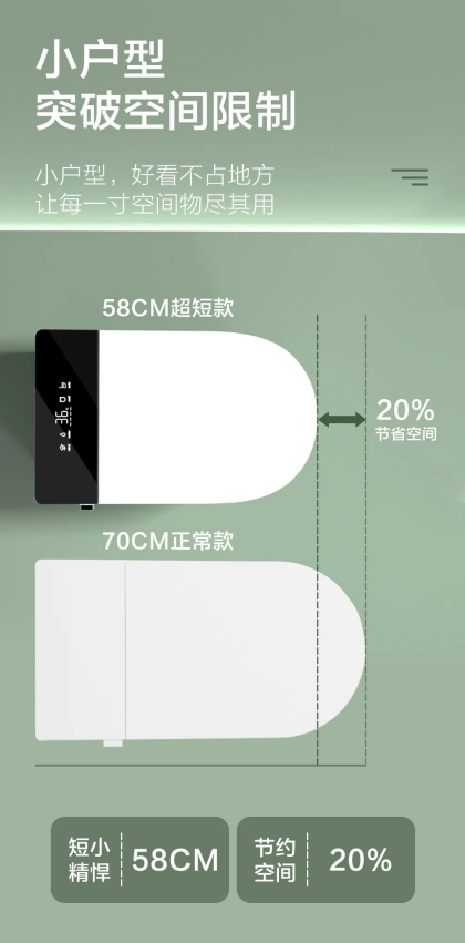 小户型卫浴间最缺啥?当然是空间!瀚本H·H·MT-007智能马桶身形小巧玲珑,完美适配小空间布局。不管你家卫浴间是狭长型、方正型,甚至有点“逼仄”,它往角落一放,瞬间腾出活动空间,再也不用在“挤马桶”的尴尬里打转~从此洗漱、如厕都能舒展自在,小户型也能拥有“大舒适”!