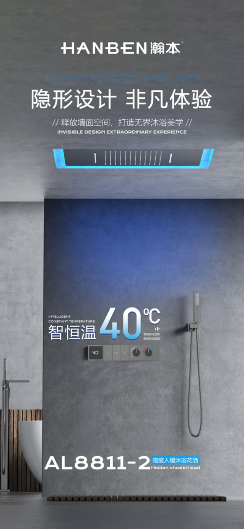 在卫浴空间的演进中,传统花洒的繁杂形态,渐渐与追求简约、一体化的现代家装理念相悖。瀚本AL8811 - 2暗装入墙沐浴花洒,以 “隐形设计” 为破局点,重新定义沐浴非凡体验。